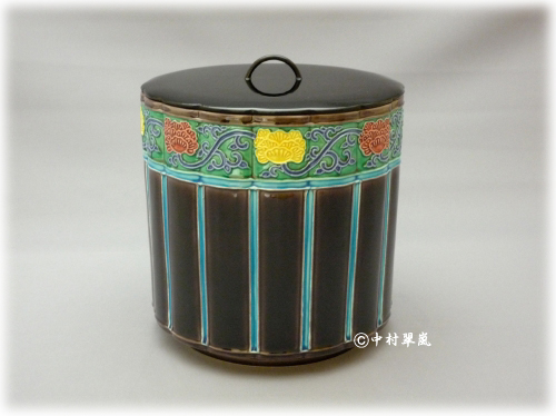 ■ 水指 桶側牡丹唐草(紫)