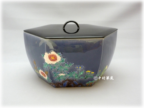 ■ 水指 四季草花(紺紫)