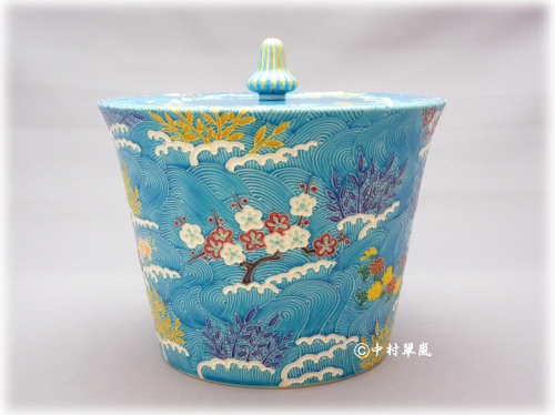 ■ 水指 末広草花波文